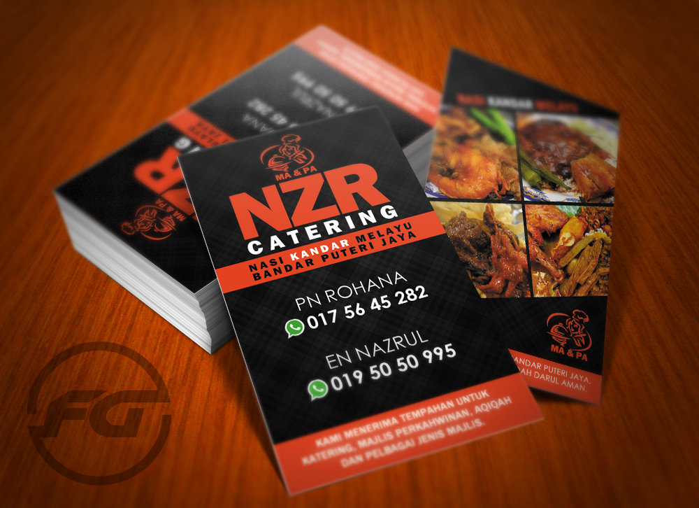 Bisnes kad katering. Bahan produk yang diperlukan untuk menghasilkan kad perniagaan mesin auto business card cutter printer inkjet dengan dakwat pigment photo paper komputer untuk merekabentuk design. Kepada mereka yang tinggal sekitar ipoh bolehlah menghubungi nombor yang tertera pada design namecard ini jika inginkan servis katering. Pengusaha bercadang untuk bersara pilihan dan menceburi bidang perniagaan katering secara sepenuh masa. Kad bisnes mempunyai banyak kepentinganyang dapat menjadikan anda dan perniagaan anda lebih maju.