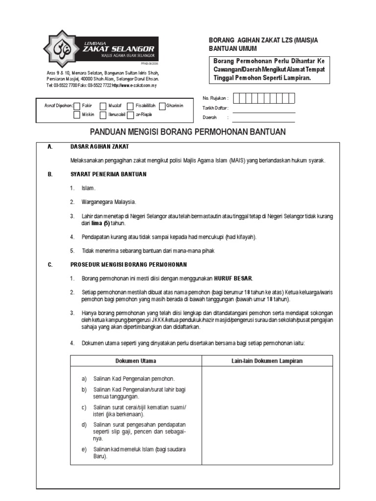 Borang permohonan skim bantuan baitulmal maiwp. Kaunter baitulmal aras 1 bangunan perkim atau pusat agihan zakat paza bagi pelajar yang bersekolah di luar wilayah persekutuan kuala lumpur dan putrajaya bagi permohonan bantuan am persekolahan yang bersekolah dalam wilayah persekutuan borang permohonan boleh diambil melalui guru baitulmal di sekolah masing masing. Borang permohonan skim bantuan baitulmal maiwp jenis bantuan. 4 3 2014 1 05 56 am.