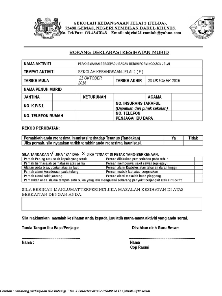 Tindakan boleh dikenakan jika maklumat yang diberikan adalah palsu. Unit kesihatan uitm cawangan perak. Borang kebenaran kontraktor individu melaksanakan tugas di hoshas. Garis panduan kementerian kesihatan malaysia.