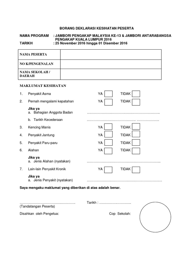 Jack aman kanan semasa penyerahan peralatan implementation of state infectious surveillance solution kepada dr norliza. Borang ini boleh disesuaikan berdasarkan keperluan setempat. Bahagian 2 sila tandakan dalam kotak berkenaan part 2 please tick the relevant box pengakuan perihal penyakit sendiri dan keluarga certification of own and family illness penyakit illness sendiri. Ketua pengarah laut 10 april 2020 6.