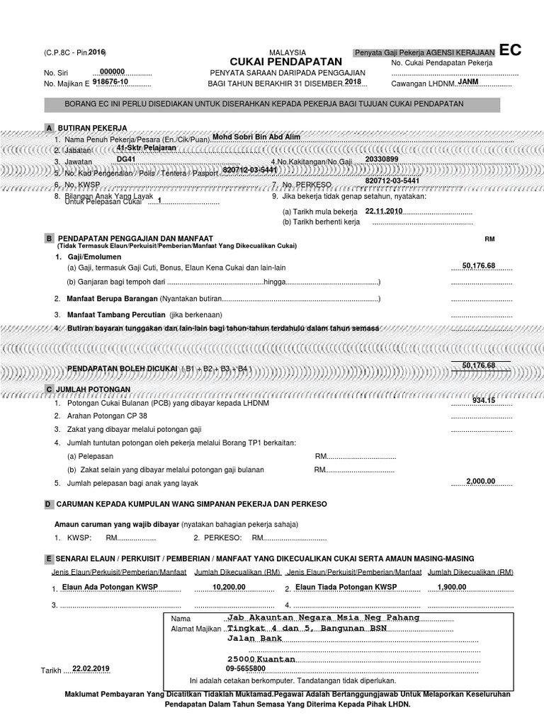 Borang ec 2019. Penyata saraan daripada penggajian tuntutan potongan dan maklumat mengenai potongan cukai di bawah kaedah kaedah cukai. 1 mengikut peruntukan subseksyen 83 1a akta cukai pendapatan 1967 acp 1967 borang c p. Jika anda kerja swasta sediakan borang ea. Program memfail borang nyata bn bagi tahun 2020 pindaan 1 2020 program memfail borang nyata bn bagi tahun 2020 pindaan 2 2020.