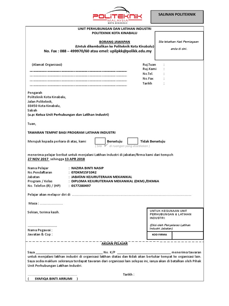 Bilakah politeknik menghantar surat tawaran rasmi kepada saya. Salinan keputusan spm yang telah disahkan 7. Salinan sijil berhenti yang telah disahkan. Klik untuk memohon terkini.