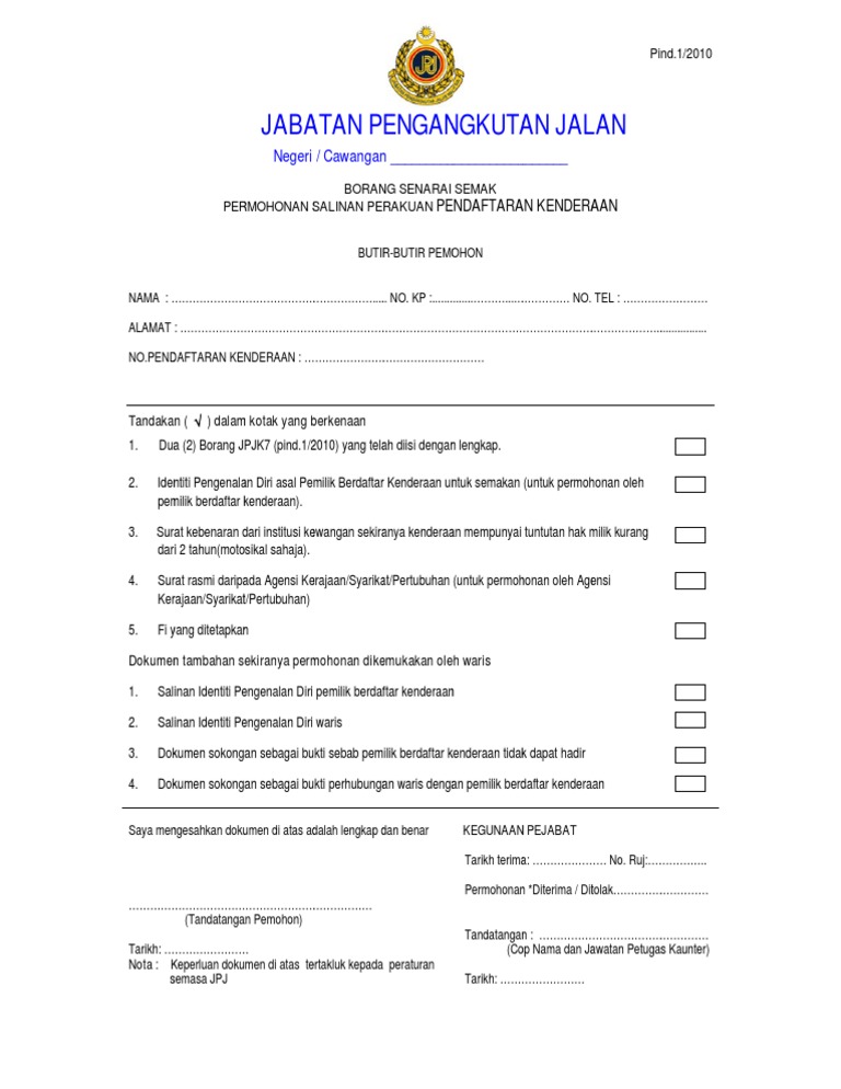 Surat tuntutan hakmilik pemunya baru. Panduan mengisi borang penyata pertukaran milikan kenderaan motor selain daripada pindahmilik secara sukarela oleh pemunya berdaftar gunakan satu petak bagi setiap huruf atau angka. Borang penyata pertukaran milikan kenderaan motor secara sukarela oleh pemunya berdaftar jpj k3 pdf. Pada 1 april 1946 jabatan pengangkutan jalan telah ditubuhkan yang bertujuan.