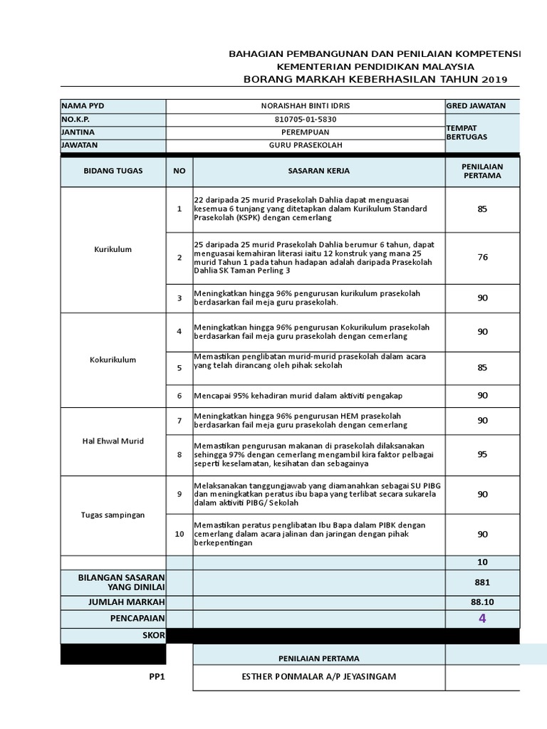 Borang markah keberhasilan tahun nama pyd no k p. Related posts to contoh borang keberhasilan guru prasekolah 2016 contoh borang keberhasilan guru prasekolah 2016 2016 11 14t20 28 00 08 00 rating. Borang keberhasilan guru akademik biasa.