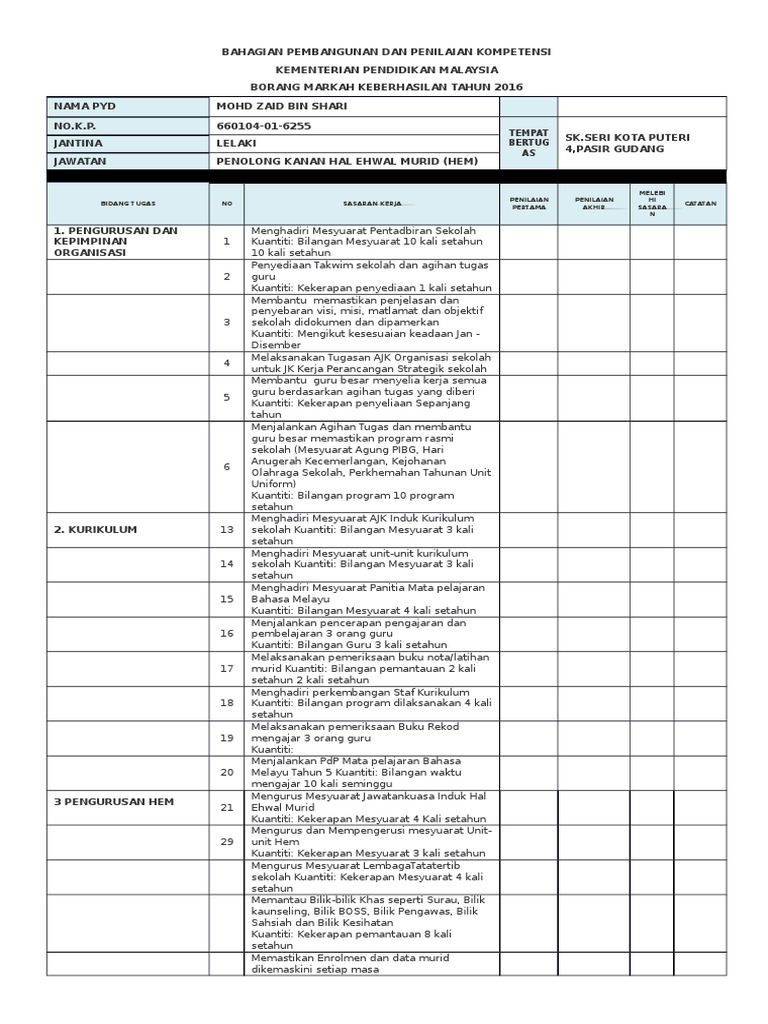 720423025919 tempat bertugas sek keb kampong belukarjantina lelaki jawatan penolong kanan hal ehwal murid hem bidang tugas no sasaran kerja penilaian pertama. Bahagian pembangunan dan penilaian kompetensi kementerian pendidikan malaysia borang markah keberhasilan tahun 2017 nama pyd ahmad radzuan bin ramaly gred jawatan dg41 no k p. Salam sejahtera cikgu saharah. Pbppp contoh pengisian borang keberhasilan gpk pentadbiran gpk hal ehwal murid gpk kokurikulum pada 26 5 2016 jumlah.