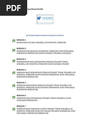 Muaturun borang borang kesihatan mental. Perintah kemasukan sebagai pesakit tidak sukarela ke hospital psikiatri oleh pegawai perubatan atau pengamal perubatan berdaftar. Pekeliling ketua pengarah kesihatan perlaksanaan program imunisasi japanese encephalitis. Borang permohonan kunci keselamatan kad akses.