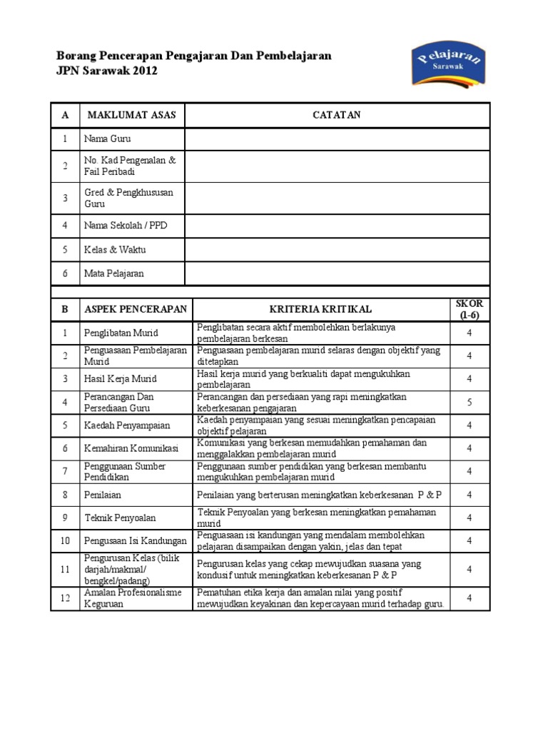 Borang pencerapan guru. Home borang pencerapan online. Jika guru mengamati borang penskoran pdpc skpmg2 terdapat 6 aspek penting yang perlu dicapai oleh guru. Semoga bermanfaat kepada guru. Bilangan guru yang tidak mencukupi juga menjadi penyumbang kepada bebanan tugas yang akan bertambah ini.