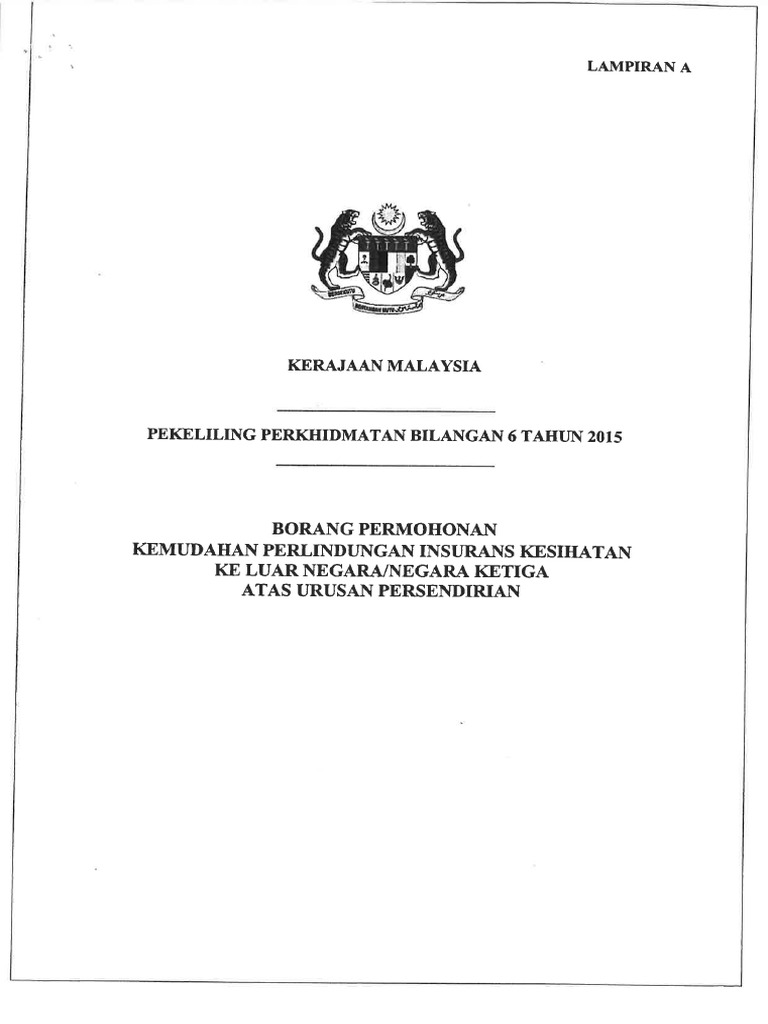 Jawatan gred. Anggaran perbelanjaan perjalanan pegawai awam ke luar negara. Maklumat hendaklah dilengkapkan dengan jelas dan menggunakan huruf besar. Di ba wah pekeliling perkhidmatan bilangan 6 tahun 2015 borang perubahan tarikh negara atau pembatalan permohonan polisi perlindungan insurans kesihatan kepada pegawai perkhidmatan awam yang berada di luar negara negara ketiga at as urusan persendirian.