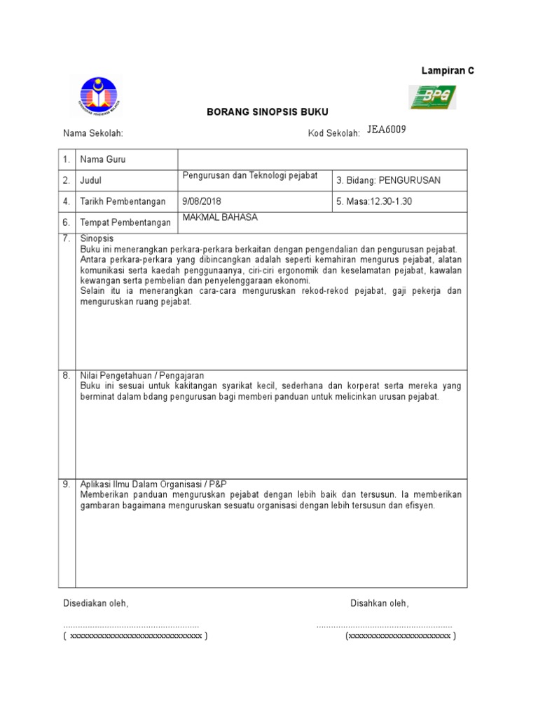 Borang sinopsis buku lampiran c. Tarikh pembentangan 5. Sk dato onn jaafar. Lampiran c borang sinopsis buku nama sekolah. Judul guru sebagai mentor 3.