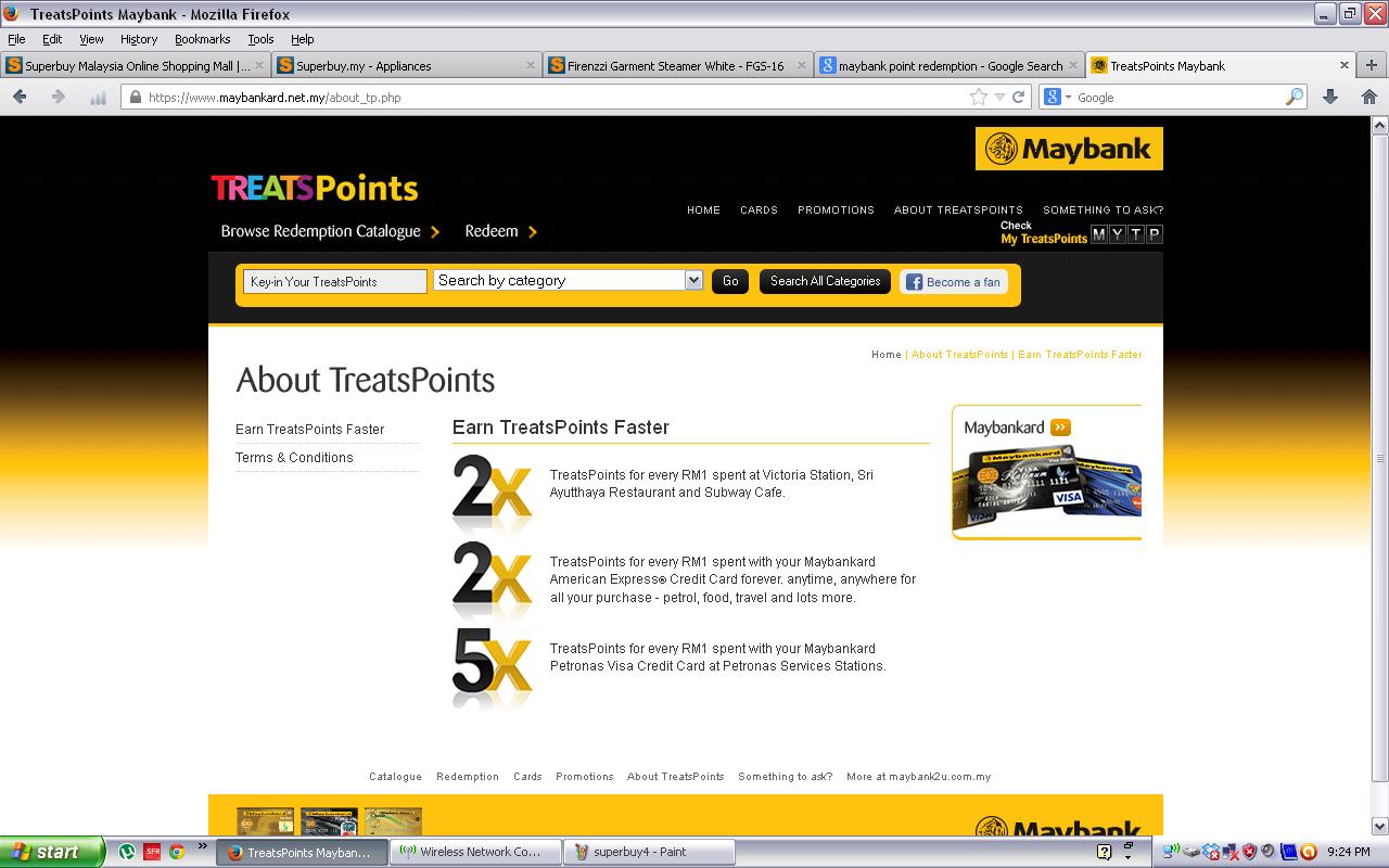 Boleh pilih untuk tebus menggunakan points sahaja atau points ditambah dengan cash. Korang boleh shopping di sini dengan redeem point kad kredit maybank. Cuma ambil sedikit masa la untuk dapat barang yang korang redeem. Ada form kena isi dan fax kepada maybank.