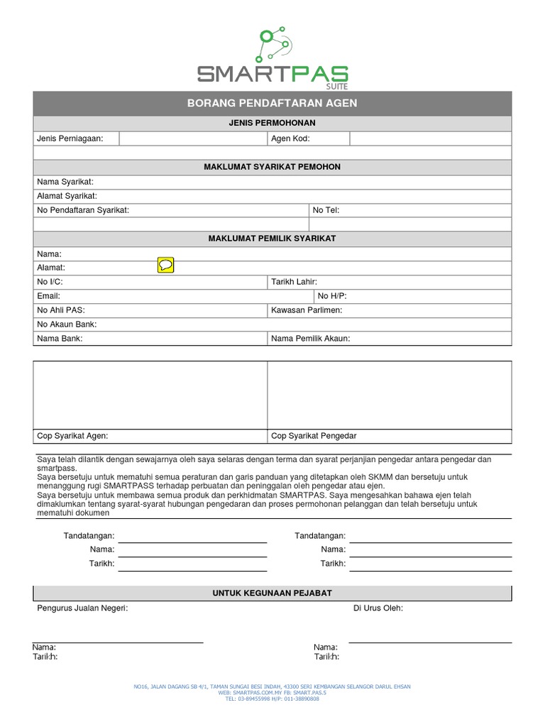 Contoh Borang Pendaftaran Agen