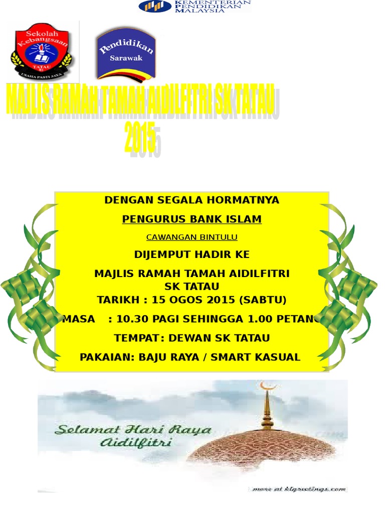 Contoh kad jemputan ramah tamah aidilfitri. Teks mc sempena majlis hari raya aidilfitri 2013 1. Majlis sambutan hari raya aidilfitri peringkat sekolah smk tengku ibrahim mengumumkan ketibaan yang berbahagia haji suhaimi bin zakaria pegawai khas koakademik pejabat pelajaran daerah setiu ke majlis sambutan hari raya aidilfitri peringkat sekolah smk tengku ibrahim. Baki telah mengadakan satu majlis ramah tamah aidilfitri dan penyampaian watikah jkkk di perkarangan rumah timbalan pengerusi. Penyampaian watikah jkkk baru sesi 2010 2012 telah diserahkan oleh pegawai daerah kuching.