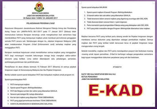 E kad pati. Ketua pengarah imigresen. Setelah mendapatkan e kad selanjutnya pati harus mengikuti program re hiring. Immigration will check the documents for e kad application 1. Jelas ketua pengarah imigresen datuk seri mustafar.