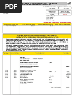 Kepada anda penyata bulanan kad kredit yang mencatatkan butir butir pembelian anda termasuk pendahuluan wang tunai jika ada jumlah baki belum jelas jumlah bayaran minimum dan tarikh akhir untuk membuat pembayaran.