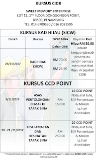 Jadual kursus kad hijau cidb 2018. Perlukan kad hijau cidb. Kami adalah syarikat bertauliah dilantik cidb untuk menjalankan kursus kad hijau. Ada bayaran rm50 00 minimum. Hubungi atau whatsapp 0111 3132468 dengan segera.