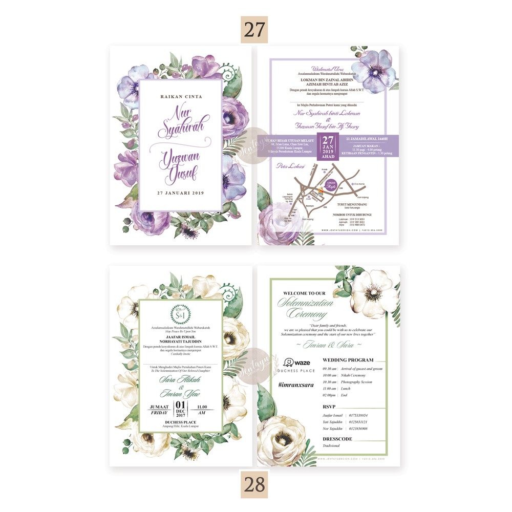Dapatkan kad perkahwinan yang indah menawan khas untuk mengalu alukan tetamu jemputan anda. Item with is compulsory. Disini kami ingin menyatakan bahawa jentayu design benar2 committed dalam kerja2 menyiapkan kad kahwin. Perkhidmatan kad kahwin no.