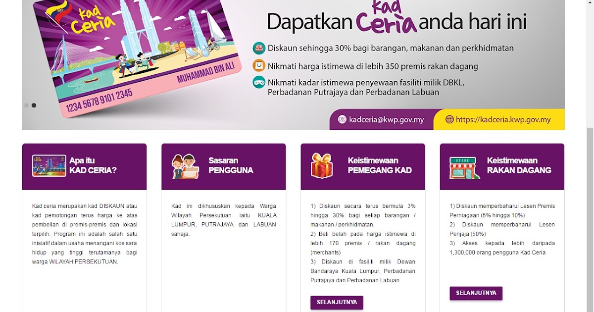 Kad ceria wilayah persekutuan. Program ini merupakan inisiatif kementerian wilayah persekutuan dalam usaha menangani kos sara hidup bagi warga wilayah persekutuan. Pembekal set data. November 29 2019 07 44 utc tarikh dicipta. Pemohon lahir di wilayah persekutuan atau menetap di wilayah persekutuan atau 4.