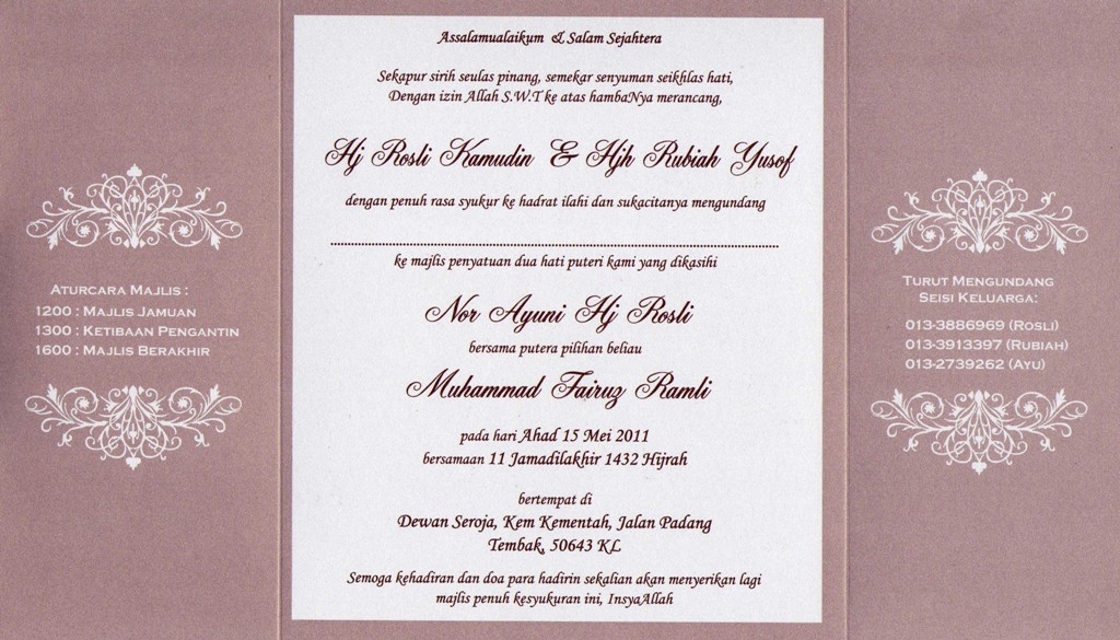 List jemputan 1 majlis berinai besar 1 majlis bertandang 1 majlis pernikahan 1 majlis resepsi 1. Kedai pasu bunga shah alam. Datang jangan tak datang tak datang tak nak kawan dah hehehe. Kad yang cantik tapi simple.