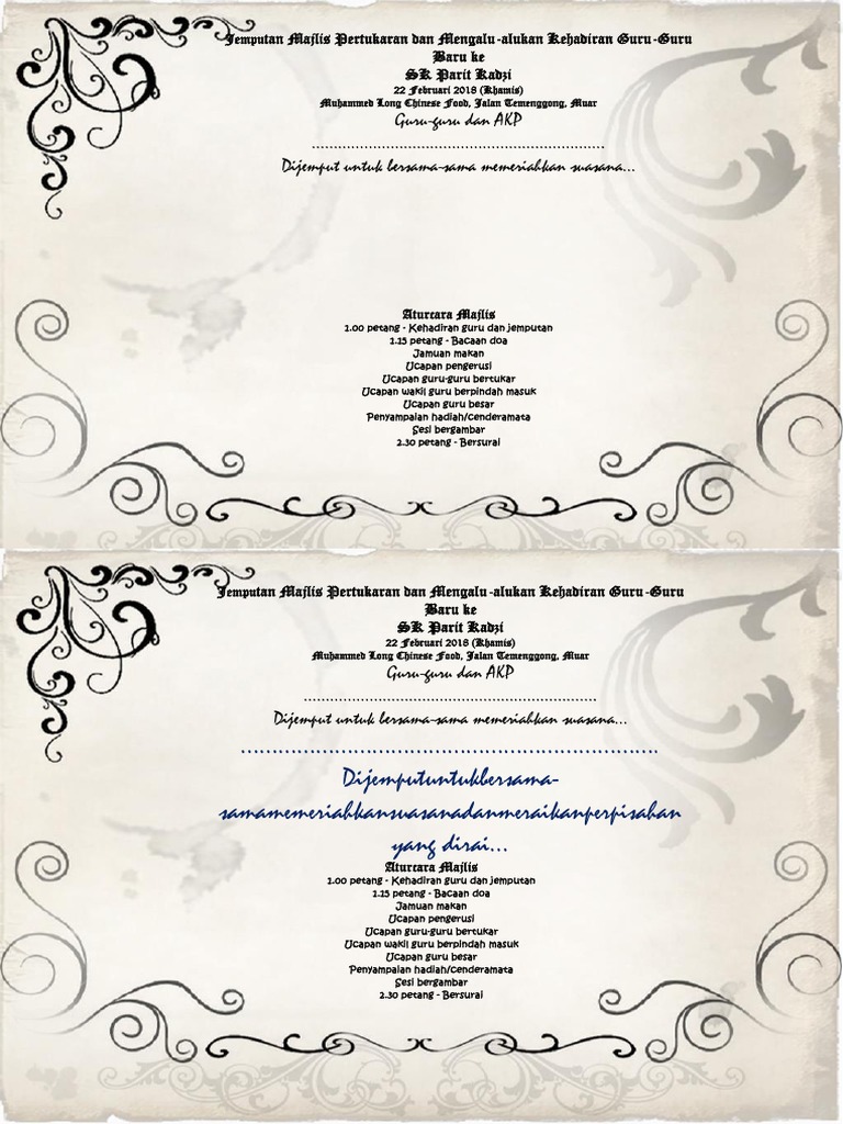 Contoh 5 kad jemputan dan atur acara dibelakang kad via protokol terengganu gov my contoh surat hari terbuka via www neodv8 co pusat sumber sksb. Pustaka susun atur kami yang direka dengan profesional boleh disesuaikan dengan kesukaan anda untuk menghasilkan kad jemputan majlis pembaptisan yang unik. Dengan pelbagai stok dan kemasan kertas anda pasti dapat apa yang anda inginkan pada harga yang sesuai dengan anda. Muat naik imej anda sendiri atau pilih daripada pustaka stok kami yang mengandungi lebih 1 juta fotograf grafik dan ilustrasi.