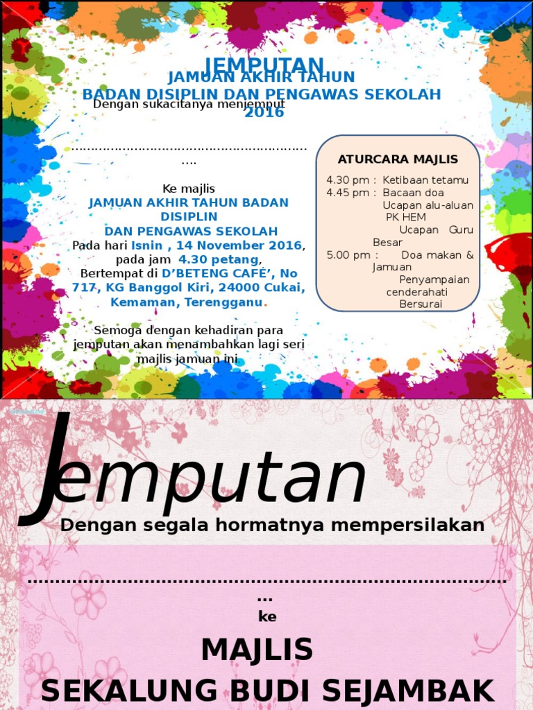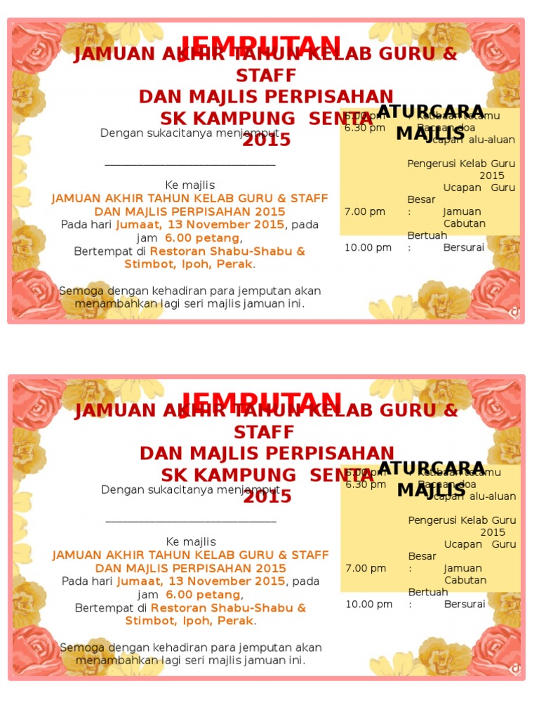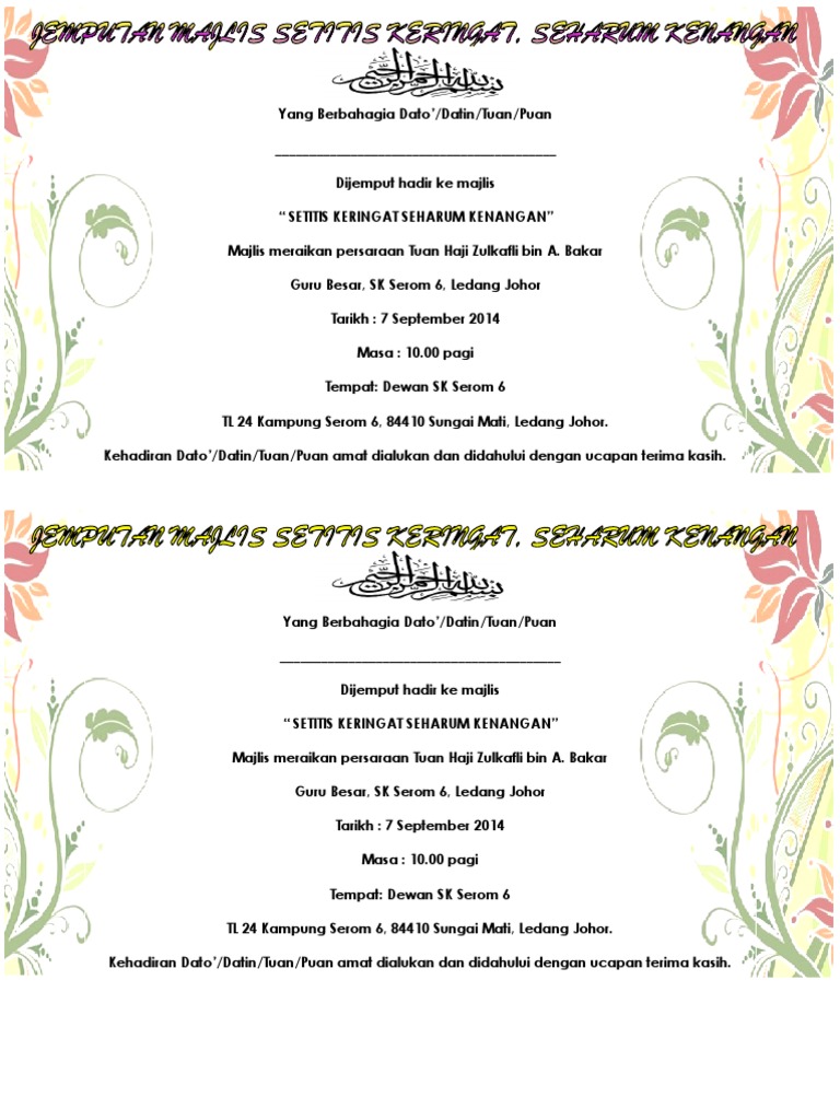 Jemputan ke majlis persaraan guru besar skpt 2016. Ketua ketua unit pejabat pendidikan daerah kluang pengerusi majlis guru besar daerah kluang guru guru besar sekolah rendah daerah kluang yang dipertua pibg sk pengkalan tereh skpt naib yang dipertua pibg skpt ajk pibg skpt ibubapa murid skpt komuniti kampung. Canva juga memudahkan anda menghantar dan berkongsi kad jemputan majlis persaraan anda. Sketch of my life buku program majlis persaraan guru besar related posts to contoh buku program persaraan contoh buku program persaraan 2016 12 03t22 38 00 08 00 rating.