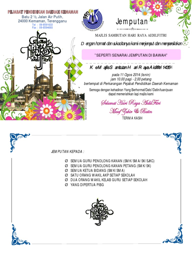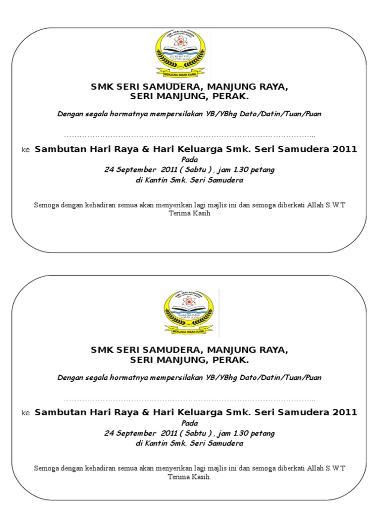 Contoh surat jemputan sambutan hari raya have an image from the other contoh surat jemputan sambutan hari raya in addition it will include a picture of a sort that could be seen in the gallery of contoh surat jemputan sambutan hari raya.