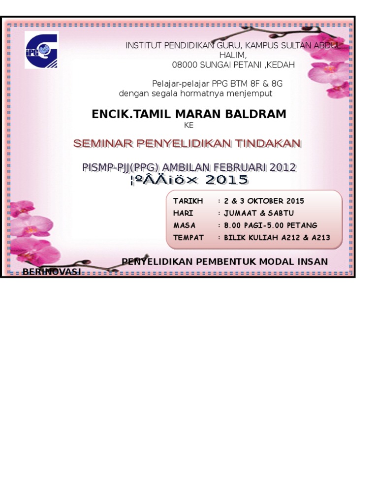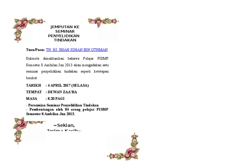 Kad jemputan seminar. Pengarah dan ketua2 jabatan ipg kti sempena seminar pembentangan kajian tindakan rbt 2011 pada 14 september 2011 by cilib0h in types brochures seminar and kad. Namun apabila dubandingkan dengan menggunakan sofware lain yang lebih terfokus. Yg pasti bukan rvp van persi manu ya gan yaa d dulu ane mikirnya rsvp ini maksudnya dari b. Sebelumnya minta rate5 yaa gan pernah dapet kartu undangan invitasi kan gan.