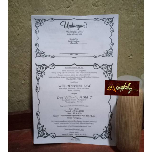 Kad jemputan walimatul ursy. Walimatul urus assalamualaikum warahmatullahi wabarakatuh. Apabila seseorang mampu merubah kemungkaran dia wajib memenuhi undangan tersebut yaitu undangan walimatul ursy yang undangannya wajib dipenuhi dengan dua tinjauan yaitu. Sekeping kad kami hulurkan. Ain ra dan syin.