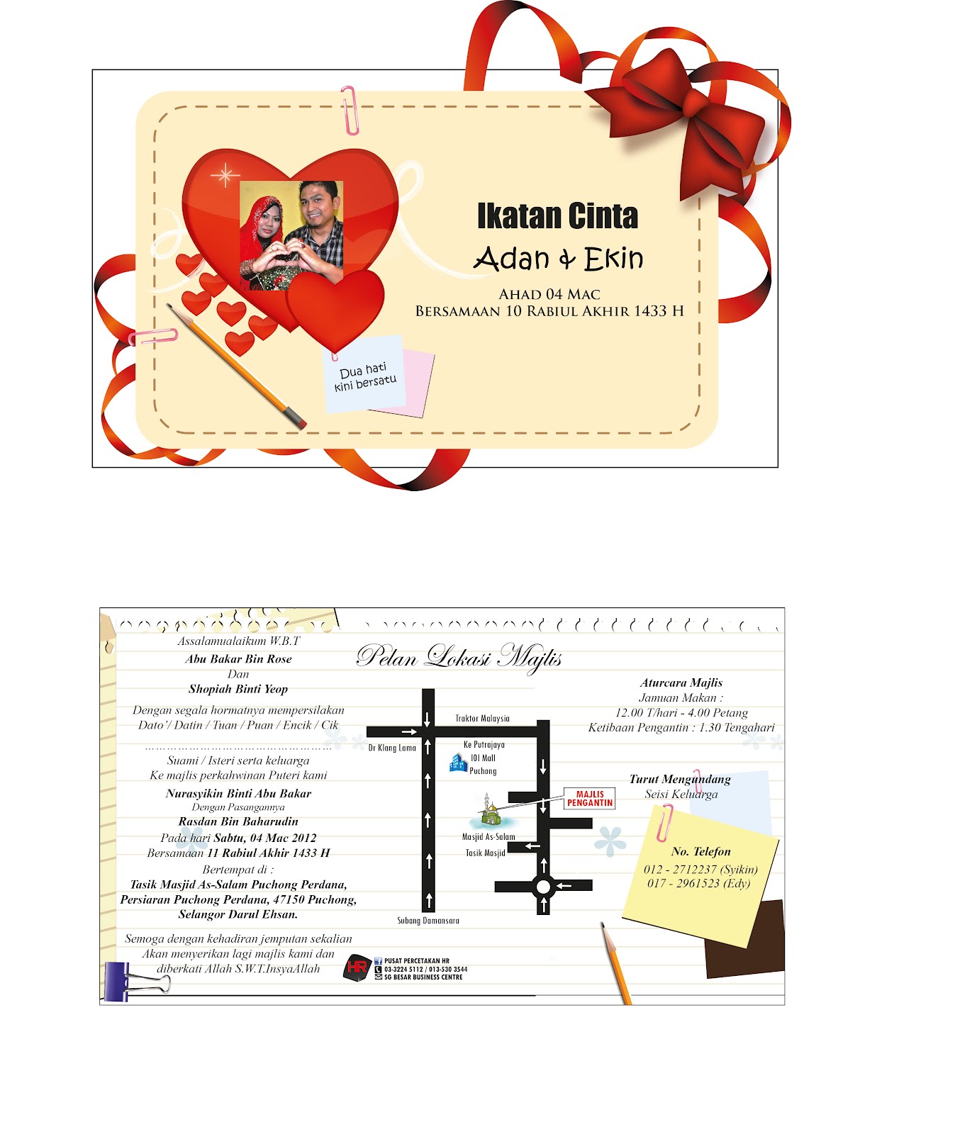 Kad kahwin cetak. Pelbagai lagi produk cetakan. Menyediakan cetakan kad kahwin pada harga murah dan mampu milik. Kad kahwin ini istimewa kepada yang ingin buat jemputan 1 atau 2 pihak dalam 1 kad. Setiap pembelian juga disertakan khidmat mereka bentuk kad versi digital dan khidmat grafik peta.