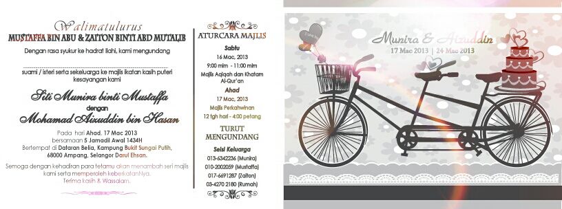 Isnin sabtu. Istimewa bagi mereka yang sukakan sesuatu yang ringkas dan sederhana harga pakej kad kahwin eco bermula dari rm198 sahaja disamping kad jemputan kahwin 4 x6 ia turut disertakan welcome banner banting penunjuk arah dan tq tag.