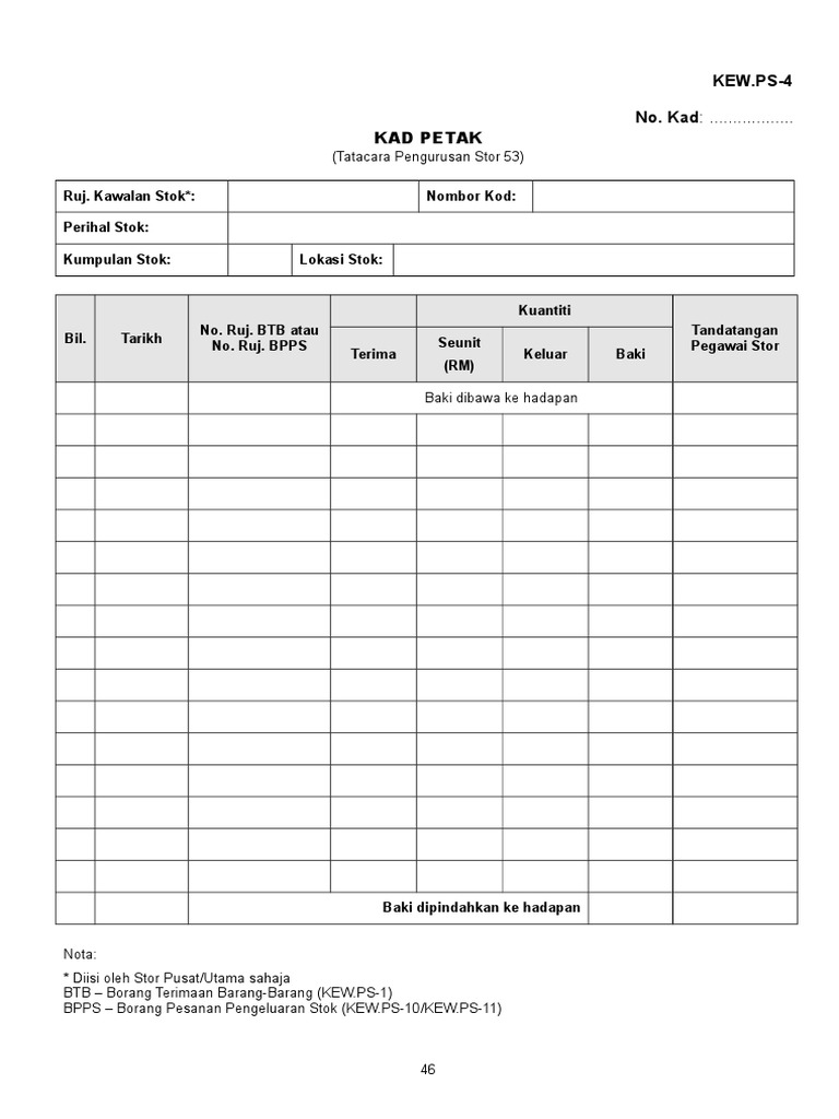 Stor pusat stor utama stor unit rekod di. Kew ps 3 kad kawalan stok kew ps 4 kad petak kew ps 3 kad kawalan stok kew ps 4 kad petak kew ps 4 kad petak warna kad kew ps 3 putih kew ps 4 hijau merah jambu untuk stok bertarikh luput bahan kimia. Pk btb bpps bps kuantiti tandatangan pegawai stor terima seunit rm keluar baki baki dibawa ke hadapan baki dipindahkan ke hadapan nota. B107 kad kawalan stok kew ps 3 keping b108 kad petak pink kew ps 4 keping stor alatulis jkwpkl 2013 masab 18.