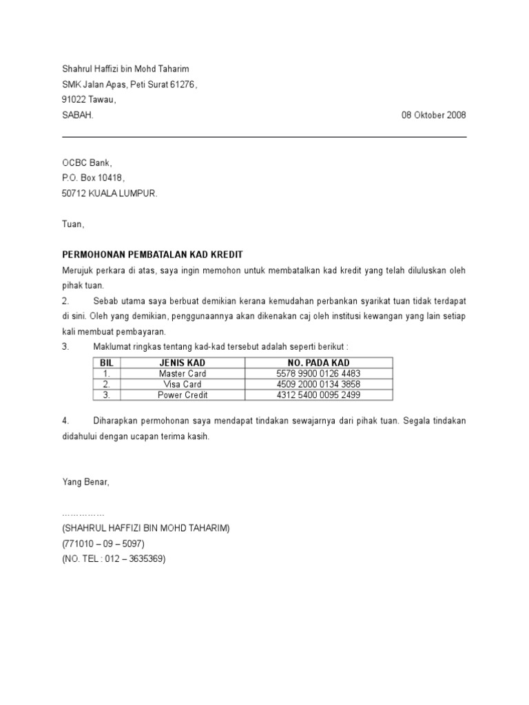 Iv pastikan tiada khidmat autodebit sama ada untuk membayar bil astro insuran air elektrik dan sebagainya dari terus aktif dalam kad kredit yang ingin dibatalkan. Had maksimum kredit yang diberikan kepada pemegang kad tidak boleh melebihi dua kali ganda pendapatan bulanan pemegang kad bagi setiap pengeluar. Buat permohonan dan permintaan supaya kad kredit anda dibatalkan 4. Sebagai contoh kad kredit citi premier miles visa dan kad kredit cimb visa signature menawarkan perlindungan sehingga rm 500 000 dan rm 300 000 untuk kecelakaan sewaktu melancong.