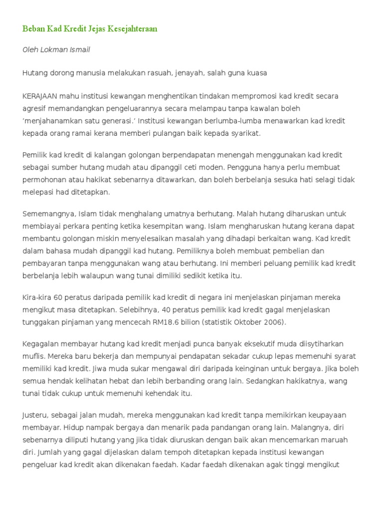Kad kredit punca bankrap. Muflis zaman sekarang disebabkan oleh penggunaan kredit kad yang tak berhemah. Seorang lagi izatul bukan nama sebenar 25 pula mengaku dia terpaksa membuat pinjaman peribadi bagi membayar balik hutang dan kini menanggung komitmen kredit yang tinggi selain membantu keluarga. Anda sendiri pasti perasan penyakit yang melanda golongan muda di malaysia ini.