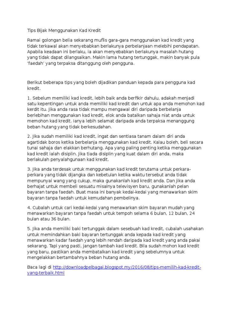 Kad kredit yg terbaik. Oleh itu pilihlah kad kredit yang mengenakan yuran yang rendah bagi pendahuluan wang tunai dan pemindahan baki. Mohon sekarang dan dapatkan promosi menarik dan hadiah percuma. Pengguna pertama kad kredit yang masih belum biasa dengan cara menggunakan kad kredit dengan betul. Graduan yang baru bekerja dan ingin membina sejara kredit.