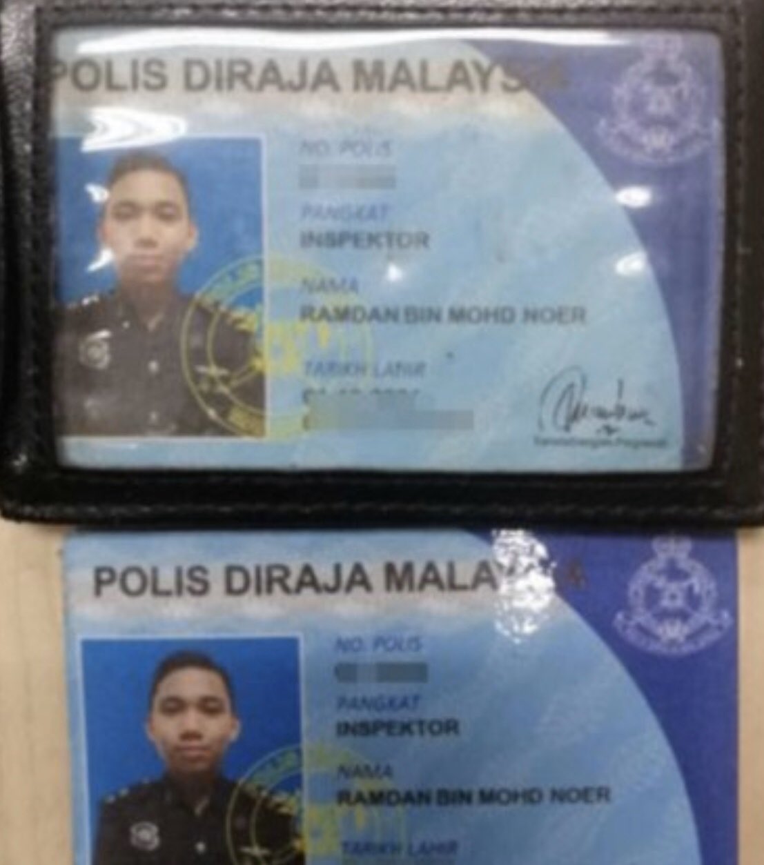 Kad kuasa polis. Bagi kad kuasa pegawai kanan polis warnanya ialah biru. Anggota polis sekali lagi memperkenalkan diri dengan menunjukkan kad kuasa namun suspek bertindak merampas kad berkenaan. Katanya seorang pegawai kemudian meluru ke kenderaan suspek dengan menjerit polis dan menunjukkan kad kuasa polis. Kad kuasa polis di malaysia mula digunakan oleh pegawai dan anggota polis diraja malaysia pdrm seperti termaktub di bawah seksyen 14 akta polis 1967 pada awalnya kad kuasa polis tersebut hanya disalut laminate dengan plastik.
