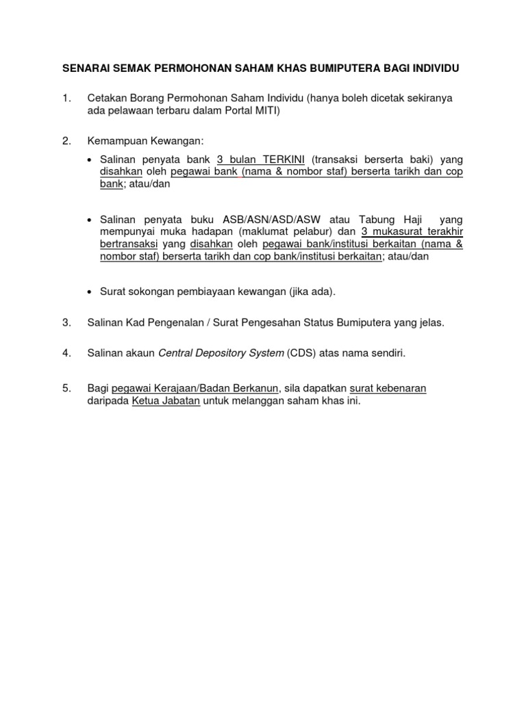 Salinan kad pengenalan pekerja serta jawatan untuk perniagaan perseorangan nama pemilik pejabat dan sewa bulanan jika milik sendiri kemukakan nama pemilik harga serta tarikh pembelian premis email dan nombor telefon rasmi. Permohonan bumiputera 6 penyata caruman kwsp pekerja terkini 7 peta lakar yang lengkap dengan mercu tanda dan nama jalan yang jelas menuju ke premis muat turun dari internet tidak diterima permohonan baru permohonan pembaharuan dan permohonan bumiputera 8 salinan kad pengenalan semua pengarah jika berkenaan wajib untuk. Status bumiputera permohonan bumiputera kementerian kewangan hanya boleh dipohon untuk syarikat yang telah mempunyai sijil kementerian kewangan syarikat syarikat hanya diiktiraf sebagai syarikat bumiputera selepas membuat permohonan status bumiputera kementerian kewangan syarat syarat dan kelayakan wajib dipenuhi untuk memohon syarikat status bumiputera untuk maklumat lanjut atau permasalahan. Cantumkan kedua dua bahagian kad pengenalan menggunakan aplikasi paint.
