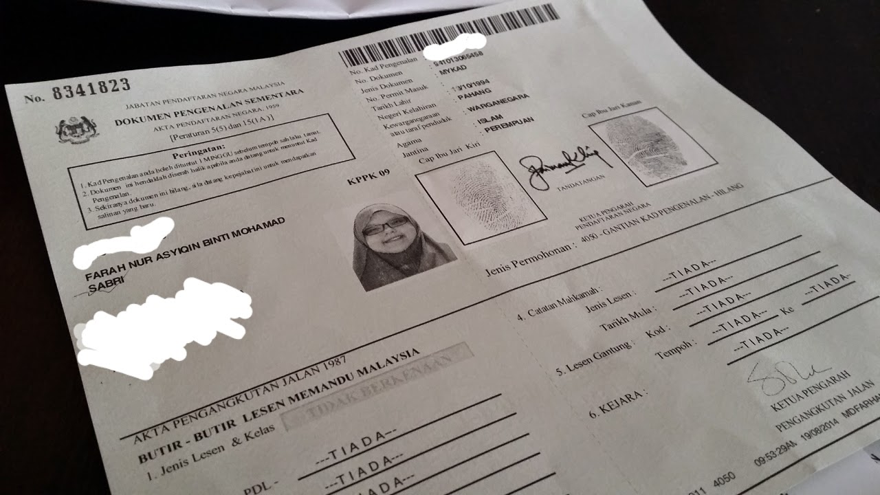 Kad pengenalan sementara hilang. Mengikut peraturan 13 peraturan peraturan pendaftaran negara 1990 pindaan 2007 setiap orang yang hilang kad pengenalannya mykad hendaklah memohon kad pengenalan gantian dengan segera. Semua permohonan gantian hilang kad pengenalan akan dikeluarkan dengan dokumen pengenalan sementara sebelum kad pengenalan gantian dikeluarkan. Jika sebelum ini pemohon perlu memohon secara manual di mana mana kaunter jpn kini anda hanya perlu login sistem gantian mykad di https mykadganti jpn gov my. Bagi kes kehilangan kad pengenalan diri ketika tempoh pkp anda perlu buat laporan polis terlebih dahulu dan gunakan salinan laporan polis tersebut buat sementara waktu dan mohon kad pengenalan baru di kaunter jpn selepas tempoh pkp tamat.
