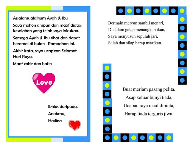 Mengait kuih di atas para. Ucapan dan pantun selamat hari raya aidilfitri 2020. Anak kucing curi ketupat kena kejar terlompat lompat nak hantar kad raya dah tak sempat hanya sms laa yang paling cepatselamat hari raya aidilfitri. Sms dihantar pengganti kad raya tanda ingatan di aidil fitri.