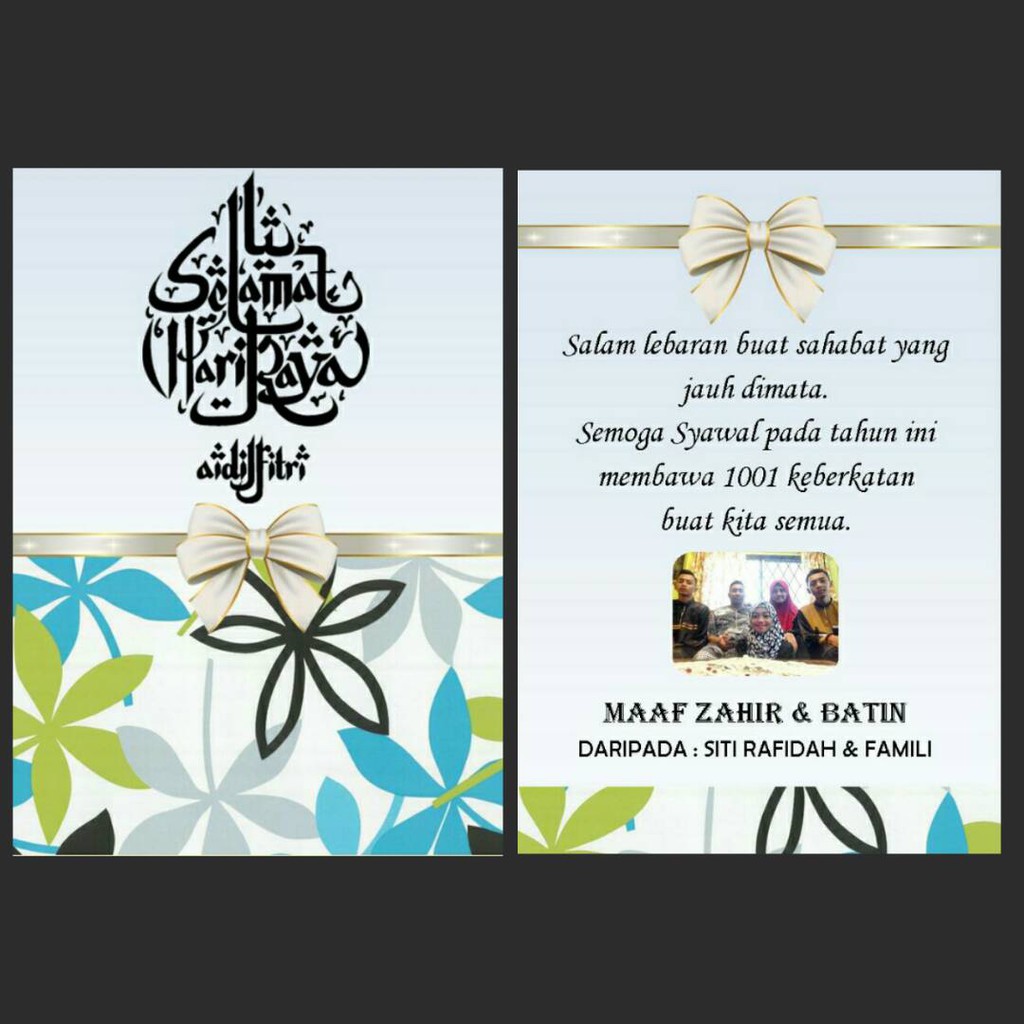 Full color printing buy kad raya aidilfitri. Gambar keluarga serangkap pantun video ucapan anda lagu raya ruangan komen dm kami sebelum purchase ya. Kad raya cantik 2020 material. Artcard 260gsm coated folding.