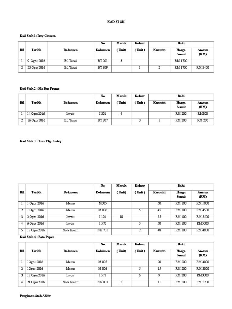 Kemudian pilih cell stok komputer judul dan pilih thick outside border juga menggunakan drop down border yang sama. Kod perihal stok 1 1 k1 kertas a4 putih 2 2 k2 kertas a4 kuning 3 3 k3 kertas a4 merah 4 4 k4 kertas a4 biru 5 5 k5 kertas a4 hijau 6 6 p1 pen hitam pilot g2 05 7 7 p2 refill pen hitam pilot g2 05 8 8 p3 pen hitam pilot g3 1 0 9 9 p4 refill pen. Stok kad bahkan mungkin berlubang untuk memudahkan kad menariknya dipindah setelah dicetak. Jumlahkan semua baki setiap kad stok.