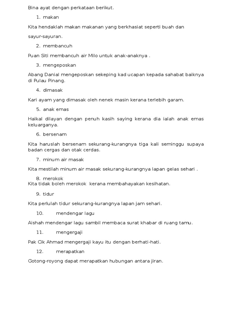Ringkas tetapi cantik mudah kan. Ayah sedang membuang sampah di dalam longkang dengan menggunakan cangkul. Ibu sedang mencantas reranting pokok bunga. Contoh ayat menggunakan perkataan ucapan dalam bahasa melayu.