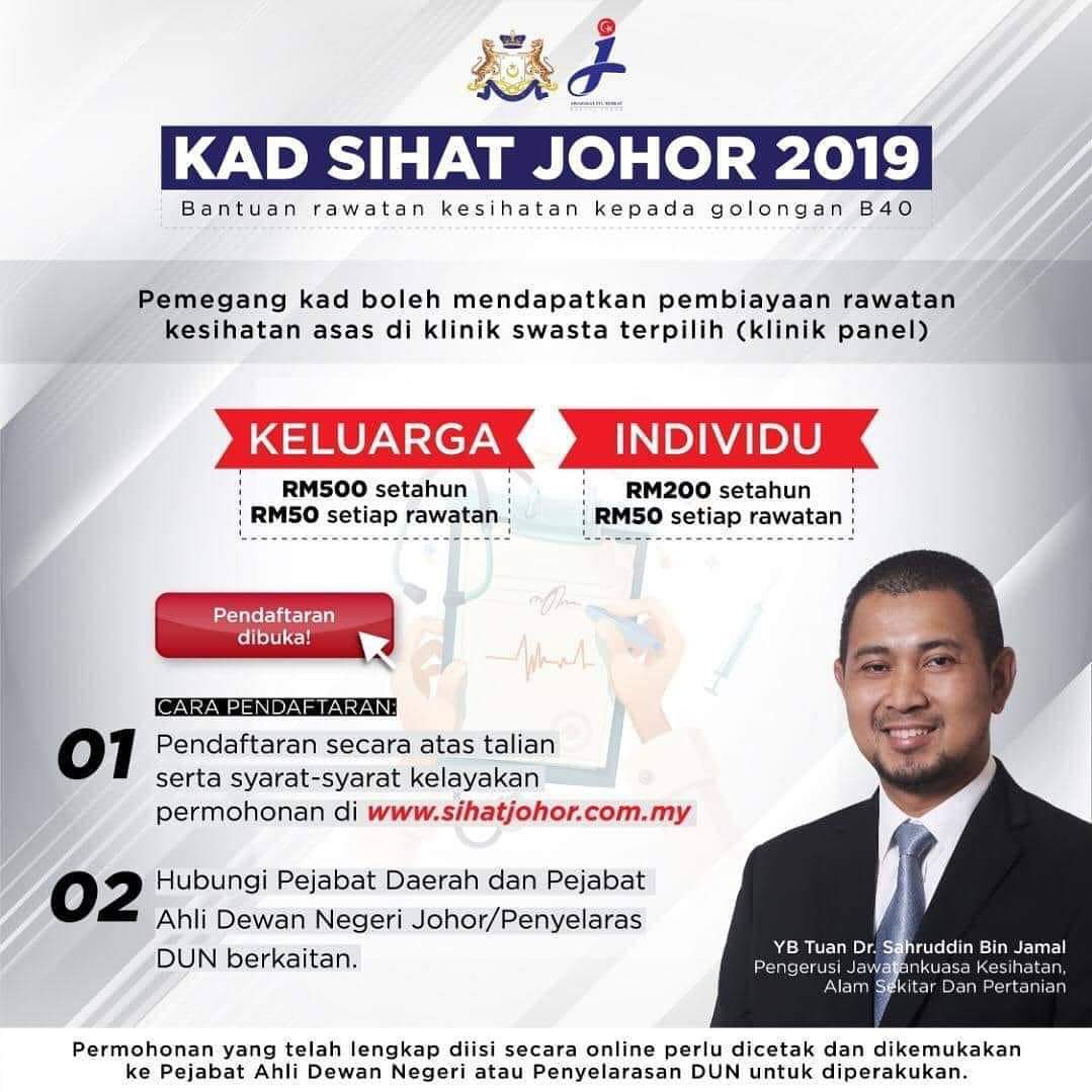 Satu bantuan rawatan kesihatan yang dikenali sebagai skim sihat johor telah diperkenalkan oleh kerajaan pakatan harapan ph. Berita baik buat rakyat dan penduduk johor kerajaan negeri johor telah memperkenalkan sebuah rawatan kesihatan yang dikenali sebagai skim sihat johor. Cara semak status permohonan kad sihat johor secara online. F g 6 block f pusat komersial parklane n0 21 jalan ss7 26 kelana jaya 47301 petaling jaya selangor.