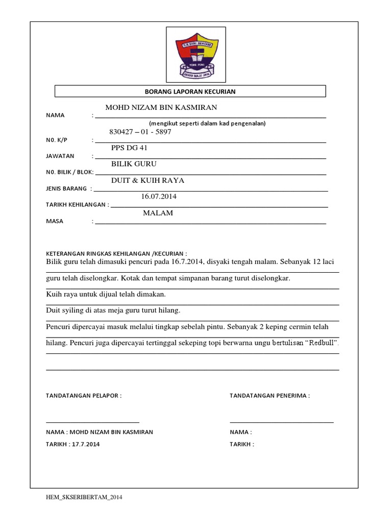 Laporan kad pengenalan hilang. 363 580 jenayah dan 20 410 bencana. Mengikut laporan jabatan pendaftaran negara jpn sebanyak 1 3 juta kad pengenalan hilang akibat kecuaian. Bagaimanapun jika kad pengenalan itu masih utuh ia berpotensi untuk digunakan bagi tujuan salah laku fraud malah kesalahan jenayah. Bagi kes kehilangan kad pengenalan diri ketika tempoh pkp anda perlu buat laporan polis terlebih dahulu dan gunakan salinan laporan polis tersebut buat sementara waktu dan mohon kad pengenalan baru di kaunter jpn selepas tempoh pkp tamat.