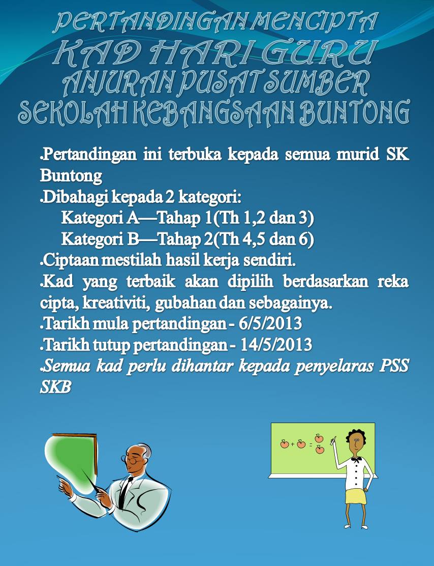 Lalu siapa saja yang bisa menjadi guru. Pertandingan mencipta kad sambutan hari guru johan tahap satu adik amni nur syahadah binti ahmad taufiq wafi pertandingan nilam home naib johan adik faith zikraa binti mohamed syahfizan pertandingan mendeklamasi sajak sambutan hari guru naib johan adik ain azzahira binti mohd faqharuddin. Di sebalik cabaran dilalui muhammad saffuan bersyukur kerana diberi kepercayaan membimbing murid sk long sepiling mencipta kejayaan hingga berpeluang mewakili negara dalam pertandingan peringkat antarabangsa di tokyo jepun pada 2017. Ucapan terimakasih untuk guru.