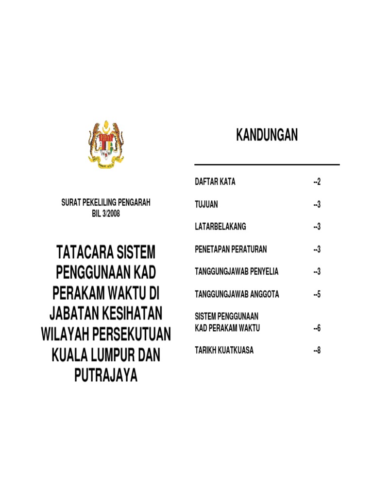 1 tahun 2004 penggunaan sistem kad perakam waktu elektronik. Kad perakam waktu punch card di pejabat pejabat kerajaan dengan hormatnya saya ingin merujuk kepada surat pekeliling am bil. Tanggungjawab dan tugas tugas pegawai pengawas 9 2 surat pekeliling am bil. Penambahbaikan waktu bekerja berperingkat wbb di agensi kerajaan persekutuan.