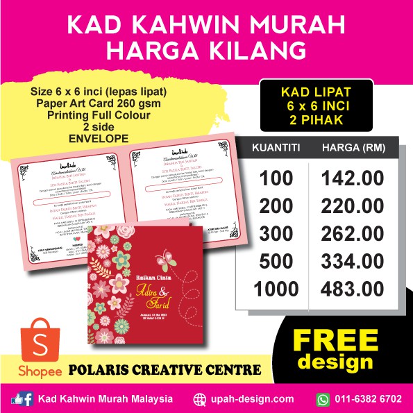Full color tempoh siap tempahan kad kahwin. Powered by create your own unique website with customizable templates. 4 x 6 inci 4 x 8 inci 6 x 6 inci. 250gsm art card 2 side coated actual size.