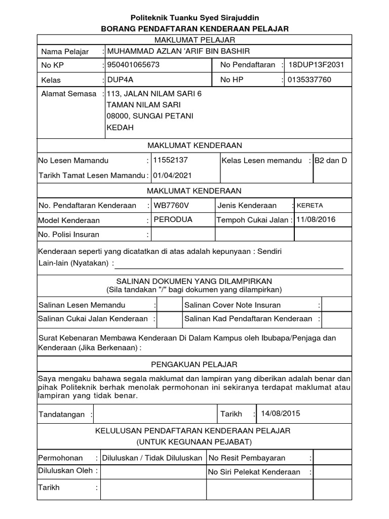 Borang yang telah lengkap dan disahkan beserta sekeping gambar berukuran passport dan salinan dokumen sokongan seperti mykad sijil kelahiran mykid diserahkan kepada pegawai jkm. Perakuan pembuatan kenderaan 3. Salinan geran kenderaan atau beritahu sahaja nombor plet kenderaan. Borang semakan dokumen pendaftaran kenderaan nama penghantar dokumen no kad pengenalan tandatangan cop rasmi pengurus pengedar 2 salinan cetakan elektronik borang d 9 13 49 dan 44 jika berkenaan jika berkenaan 1 salinan jika berkenaan kenderaan perdagangan 2.