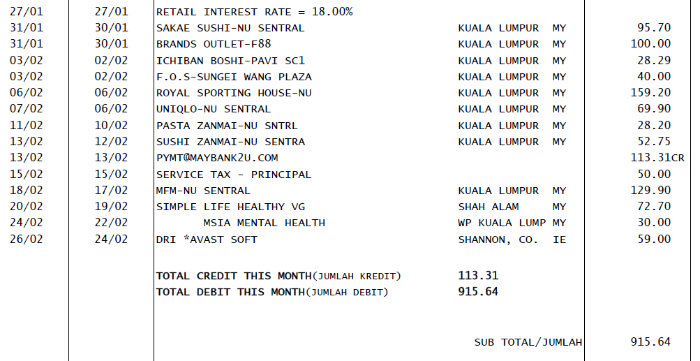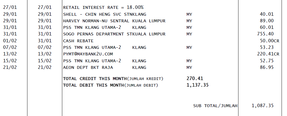 Statement kad kredit maybank. Kalau boleh pakai cc pakai cc. Kat bawah ni adalah 7 perkara yang korang kena tahu sebelum dapatkan kad kredit yang pertama. Cuma disebabkan bukan semua tempat terima cc jadi bawalah cash juga. Kejadian 1 en khairil menggunakan kad kredit maybank nya dan membeli barangan di mydin secara hutang iaitu sebanyak rm 250 00.